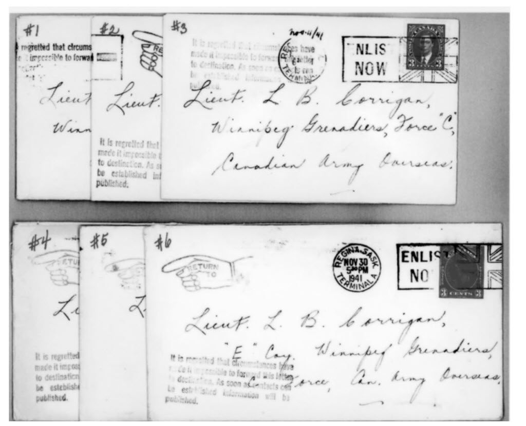 The period from December 26, 1941 until the unconfirmed report in May, 1942, left the families in Canada with no information on the prisoners of war – or the state of their health. The last word from Leonard to Gladys was a cable, dated November 23, 1941, to say, “All well and safe all my love my thoughts are with you”. From then on, no letters from Leonard are received and all her letters to him have been returned. It is the start of long and anxious days for the next nearly four years.