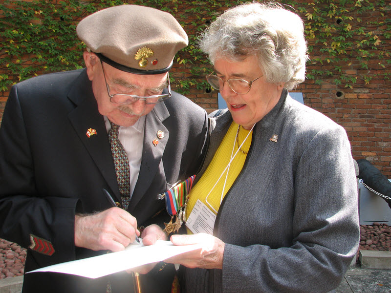 Pat Turcotte and Hong Kong Veteran, Ed Shayler, who had been Lt. Corrigan's Sergeant during the Battle of Hong Kong (VAC Photo). Click for larger view.