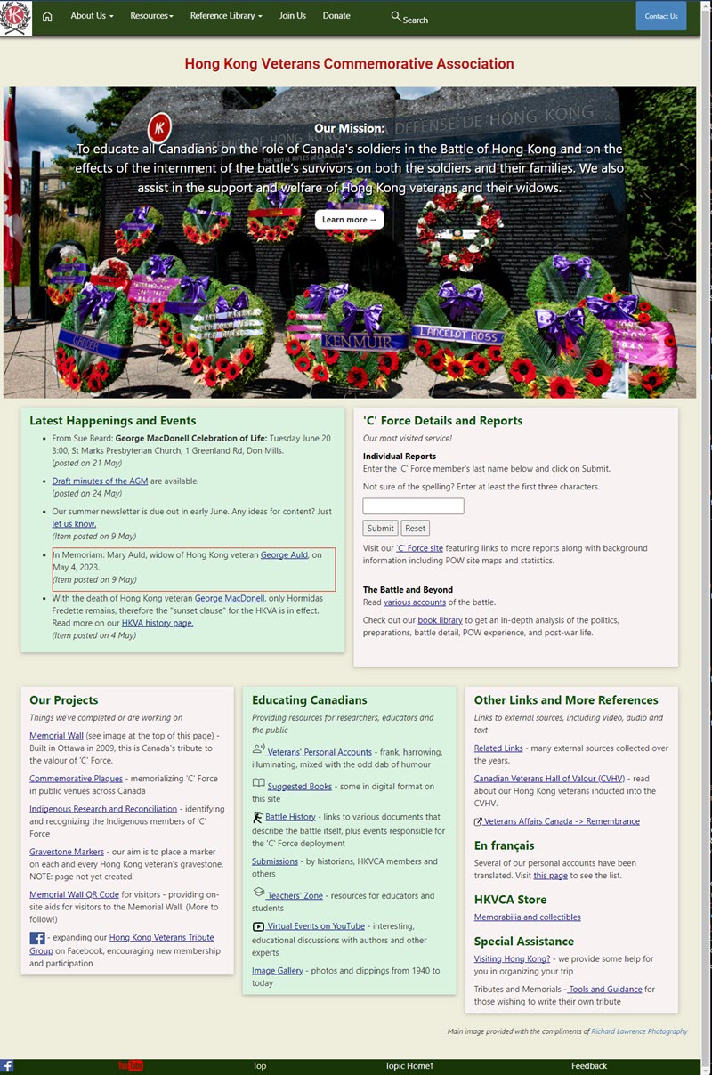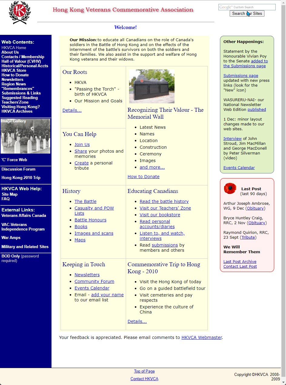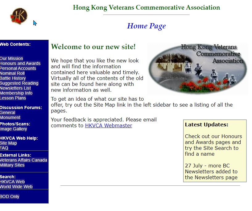 A quick glance at our mission indicates education as our focus, and our websites have become a key tool in meeting that objective. Let's face it, the Battle of Hong Kong does not figure prominently in our National history, so we can't depend on outside agencies to provide the information; we have to collect it ourselves.