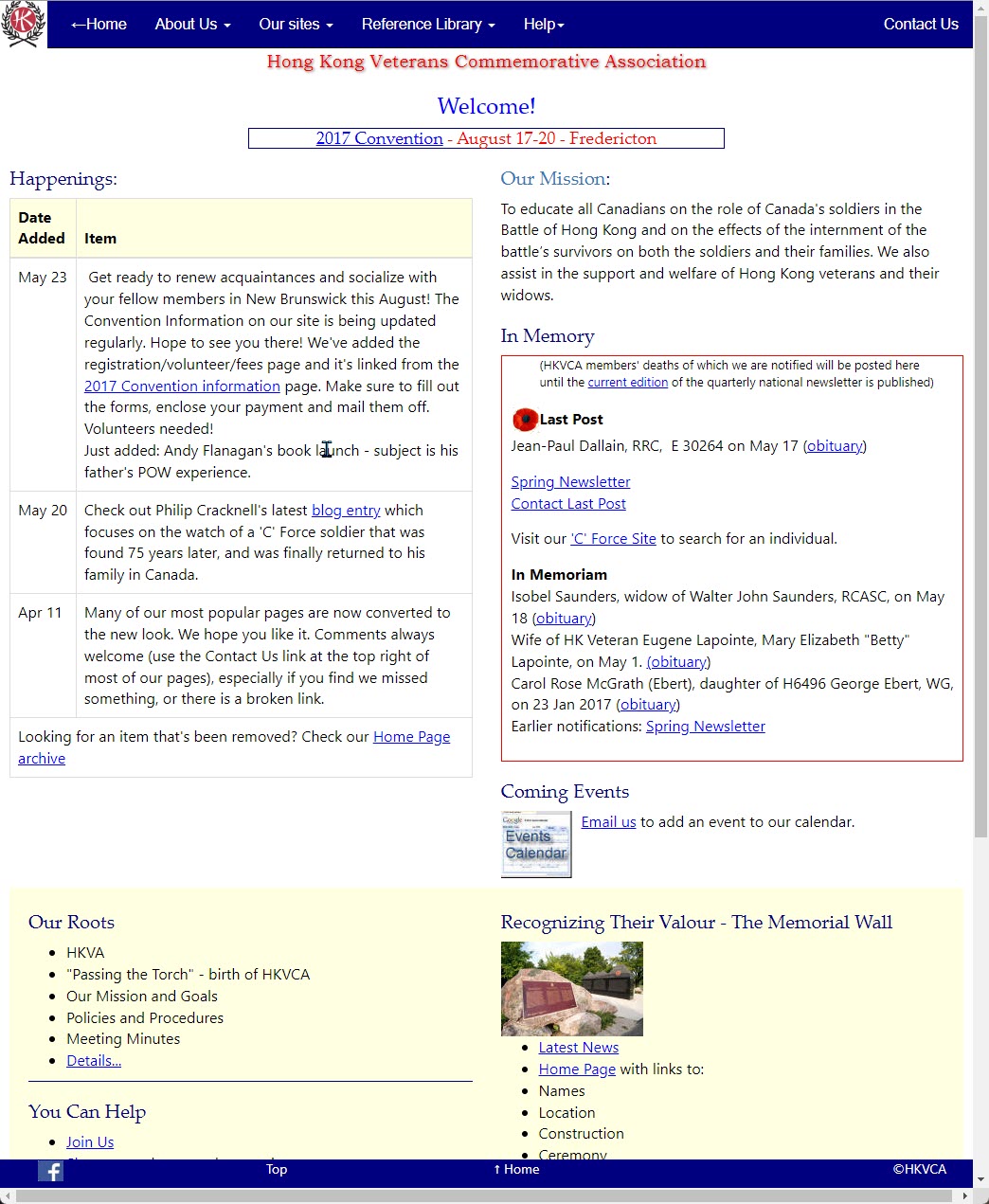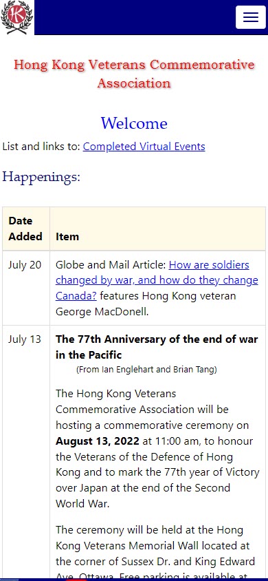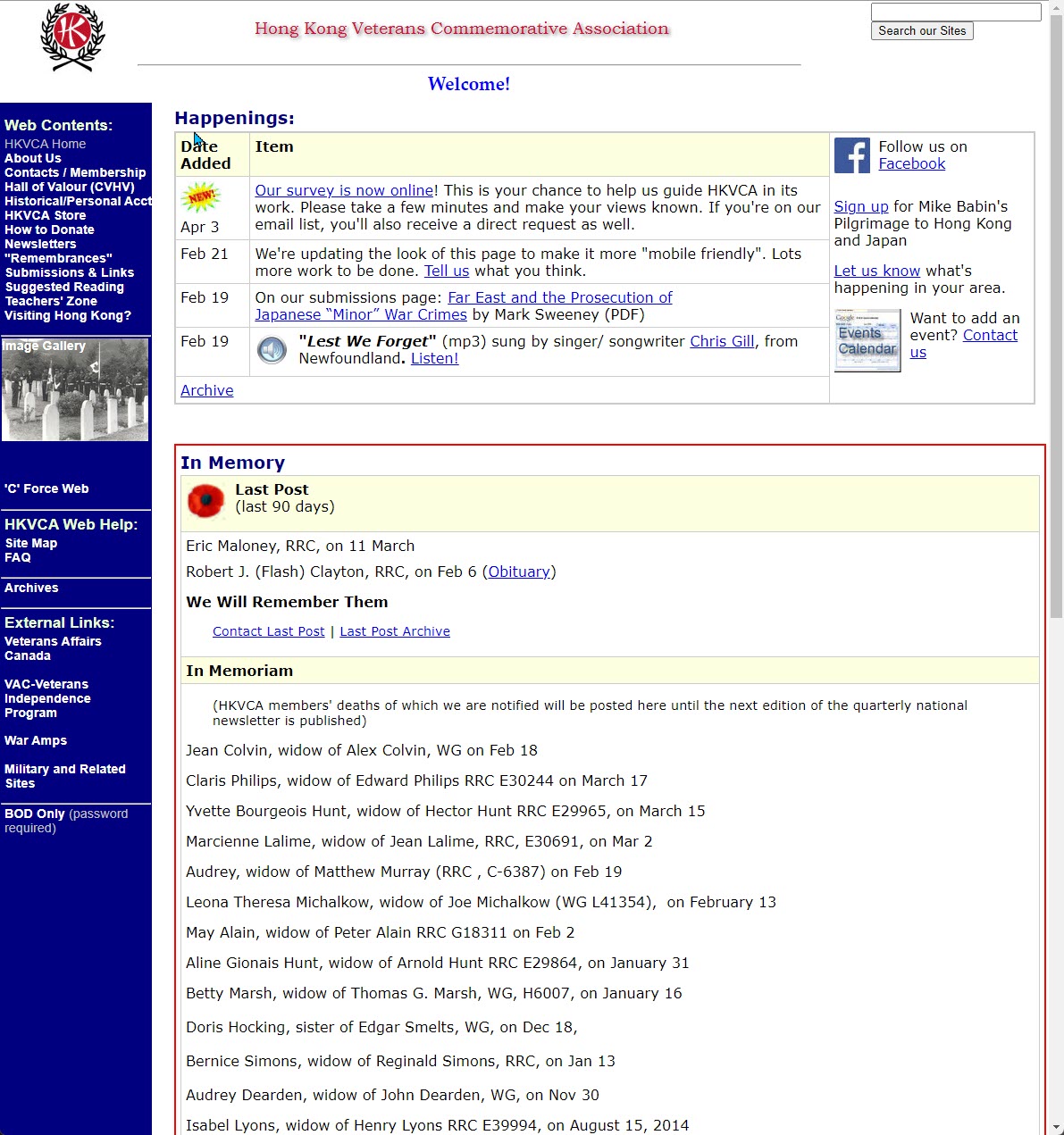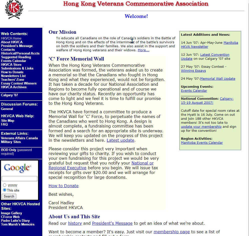 A quick glance at our mission indicates education as our focus, and our websites have become a key tool in meeting that objective. Let's face it, the Battle of Hong Kong does not figure prominently in our National history, so we can't depend on outside agencies to provide the information; we have to collect it ourselves.