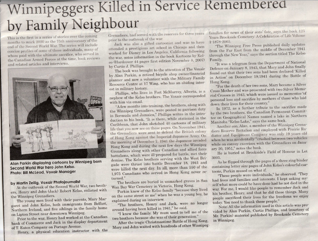 | July 20 | Globe and Mail Article: How are soldiers changed by war, and how do they change Canada? features Hong Kong veteran George MacDonell. |