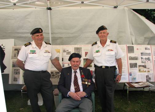 We were grateful that Noreen Cambon brought her mother Eileen Cambon to our display area. Eileen is the widow of Dr. Ken Cambon, RRC. Thank you also to Bev and Diane for bringing Gerry and Ev and John and Florence to the events. The temperature was very hot by the time the Parade of the Veterans took place and our two HK vets stood tall and didn’t bat an eyelash.
