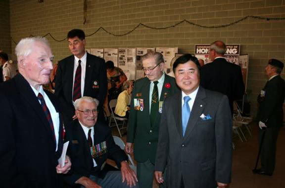 Lieutenant Governor Philip Lee attended the 66th Anniversary of Victory over Japan (VJ Day) with Bill Bell (Left) and George Peterson (seated) – Hong Kong Veterans.