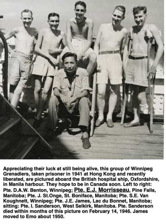 Happy to be alive, Winnipeg Grenadier smile on board a hospital ship in 1945 after being liberated from nearly four years in Japanese prison camps.