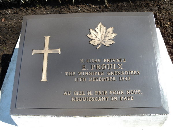 Métis of the Saulteaux Nation born as Victor Ernest Proulx. Son of Onésime Proulx and Rosalie Ducharme, of St. Anne, Manitoba. Brother of Private Edmond Proulx, regimental number H-61671, who fought in Europe during the Second World War and survived the war. To commemorate his sacrifice, the Manitoba government named Proulx Bay located on Spruce Lake in his honor in 1989.
