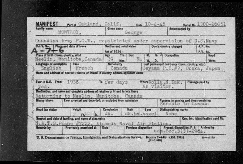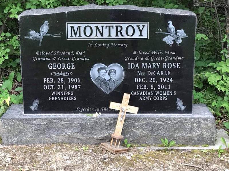 Suddenly on Saturday, October 31st, 1987 at his residence, Corporal George Montroy, aged 81 years, of Riverton, Manitoba, beloved husband of Ida Montroy. George was born in Neelin, Manitoba February 28th, 1906. He was a Corporal with the Winnipeg Grenadiers and had served in Jamaica and Hong Kong. He was a Japanese prisoner of war from 1941 to 1945. After the war, George bent his initial years farming and 15 years employed with Grey Goose Bus Lines. He then managed the credit union in Riverton where he retired and lived his remaining years.