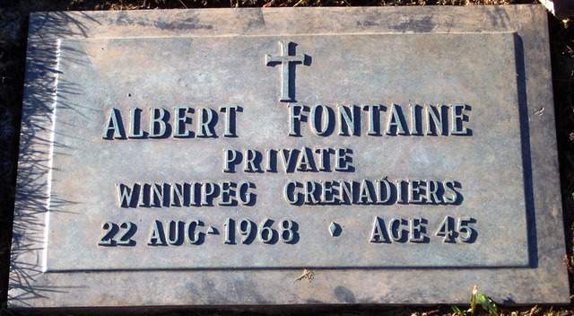 Albert was born in St. Boniface Manitoba. He was my biological father and I did not know him. Remembrance Day had me wanting to search and your website gave me a lot of good information. I found a Winnipeg Free Press POW list with his name and it seems he had a wife at the time. Her name was J.E Fontaine with a Winnipeg address. But I have reached a dead end so far. He was with my mother Margery Knoblauch in early 1960. I was born June 1962 and my sister Susan Sept 1963. I also found he was a construction worker and a cat operator. I recall when I was 6 that a sheriff came to our house to inform my mother of his passing. We do not know what his middle name is. It has been very interesting to discover all of this and it is greatly appreciated that those who served are not forgotten because of all the work you do.