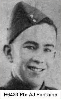 At the outbreak of war Pte. Fontaine, 19, enlisted with the Winnipeg Grenadiers and later fought at Hong Kong. His wife, Jean, resides at 796 Beverley st. He is the son of Mr. and Mrs. Charles Fontaine, Lac du Bonnet.