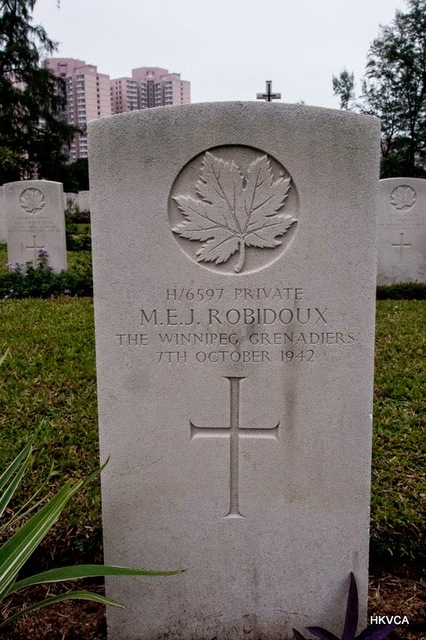 Son of Joseph Olivier Eugene Robidoux and Lucie Lavallée (aka Lucy) of St. François Xavier, Manitoba. Served in Manitoba, Jamaica with Y Force and Hong Kong with C Force. He had 1,109 days of service, including 343 overseas. To commemorate his sacrifice, the Manitoba government named Robidoux Lake located south of York Factory in his honor in 1964.