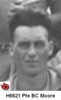 His full name is Bertrand Cyril Augustus Moore. Son of Thomas Charles Moore and Ellen Rose Cheecho or Tisho, of the Cree Nation, Cochrane, Ontario. Brother of Private Edward Frederick Moore, regimental number B-148991, killed in action on July 28th, 1944 in Normandy, France, while serving with the 18th Canadian Field Artillery, and Private Grace V. Moore, regimental number W-20931, Canadian Army. She survived the war. Served in Manitoba, Jamaica with Y Force, Hong Kong with C Force and Japan as a prisoner of war.