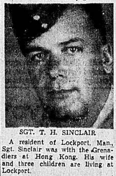 Sergeant T. H. Sinclair - A resident of Lockport, Manitoba, Sergeant Sinclair was with the Grenadiers at Hong Kong. His wife and three children are living at Lockport.