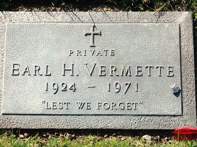 On October 20, 1971, Earl Herbert Vermette, of 5150 Moss St., aged 47 years. Survived by his wife, Lily, and daughter. Patricia. Served in Second World War. Funeral service Friday, October 29, at 1:30 pm., in the CHAPEL OF CHIMES, Harron Bros. Ltd. on 10th Ave., 2 blocks west of Main St., Rev. Canon W. Garbutt officiating Interment Victory Memorial Park.