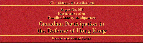 2. The record of the authorization, organization and despatch of the Force has been drawn from Headquarters Files at the Department of National Defence, Ottawa. The account of the operations of the Canadian Forces at Hong Kong is based primarily upon detailed reports compiled by the component units of the Force, and now in the files of the Historical Section at Ottawa. Particularly valuable are those of the two infantry battalions, prepared in Japanese Prisoner of War Camps by the Officers Commanding and other surviving officers of the units. Their narratives have been supplemented by personal interviews after their return to Canada. These Canadian sources have been examined the background of reports submitted by G.O.C. British Troops in China, and the Brigade Commander under whom one of the Canadian battalions served (Operations at Hong Kong 8-25 Dec 1941, Despatch by Maj Gen C.M. Maltby, M.C.; War Diary< and Narrative, Mainland Infantry Brigade and Attached Troops, Brig. C. Wallis; and War Diary and Narrative, East Infantry Brigade and Attached Troops, Brig. C. Wallis).