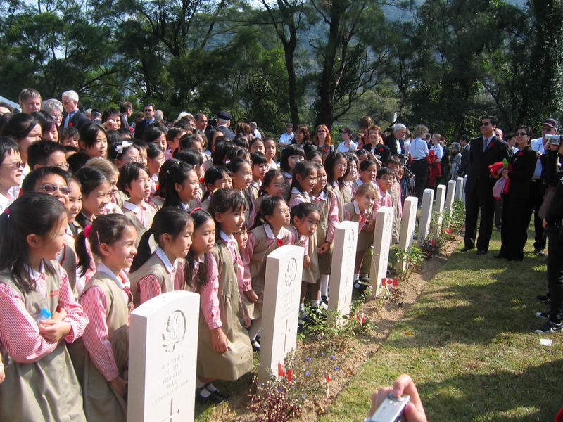 We have enjoyed their company in the more relaxed moments this week and we have been proud to see the honour paid them, not only by the children of the Canadian International School of Hong Kong in performing for them at Sai Wan Cemetery, but in the heartfelt emotions displayed by the high school students from Durham Region in Ontario as they read from the works they submitted for inclusion in the Memorial capsule.