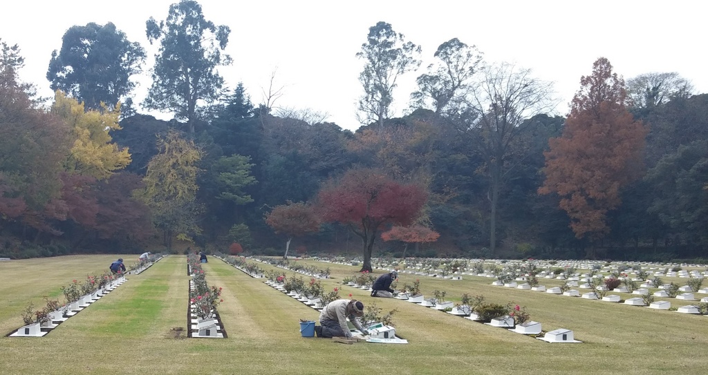 Today we participated in a commemoration ceremony at Yokohama War Cemetery. Most of us were here because our fathers and other relatives had been transported to Japan on the "hellships" and were then used as slave labour. We had some difficulty finding the location for the ceremony as the cemetery is tucked in on a side road. The ceremony was simple but moving, with several wreaths being laid. As happened at Stanley, some of the HKVCA participants shared some memories of their fathers with the group. The Canadian Embassy in Tokyo had staff in attendance as well.