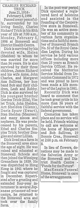 | 5 Feb 96 | Died at Stonewall hospital - age 79 years |