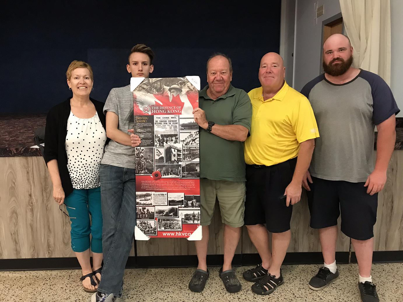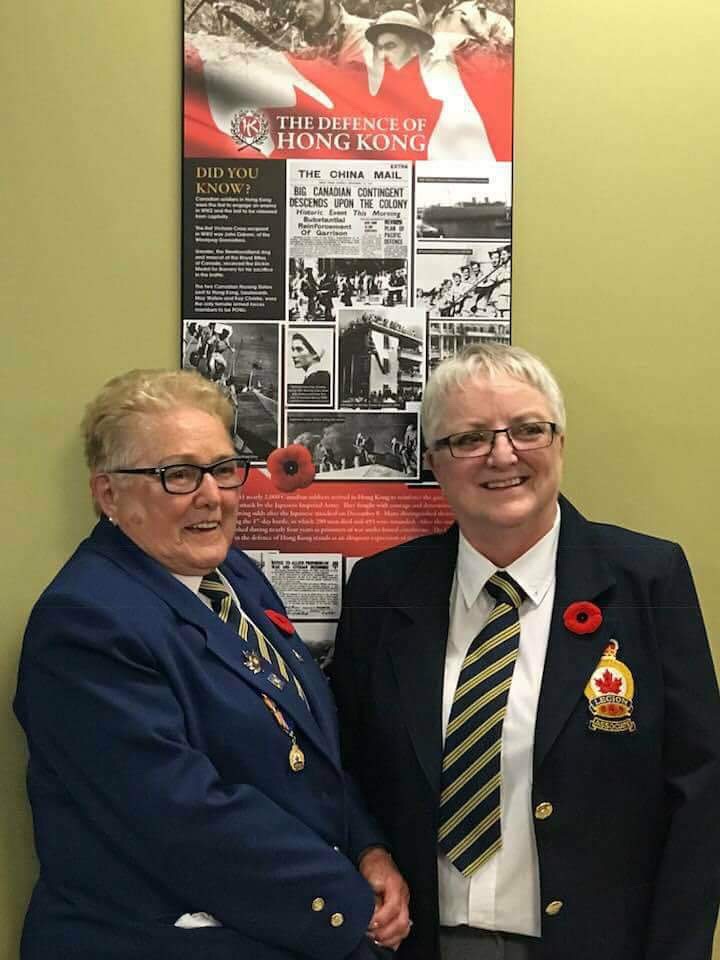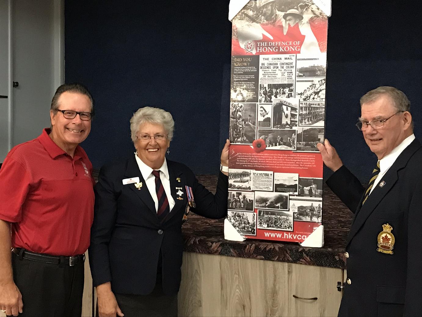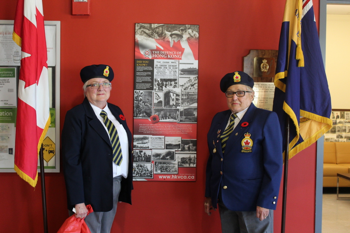 The plaque, honouring the almost 2000 Canadian soldiers including 290 that were killed in the mountainous terrain of Hong Kong, 500 who were wounded and 264 soldiers who died in captivity, was presented to the legion by Lori Atkinson-Smith on behalf of the Hong Kong Veterans Commemorative Association. Atkinson-Smith’s father, a member of the Winnipeg Grenadiers was himself a survivor and she is carrying on her father’s mission to educate people about the Battle of Hong Kong and the terrible cost. The Association exists, she continued, to “help ensure that this part of Canada’s military history is not forgotten.”
