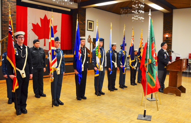 The 12 Cadets who formed a Colour Party represented the 395 Edmonton Griffin RCACS, the 27 Warriors Royal Canadian Sea Cadets), and the 2551 Princess Patricia Cadets.