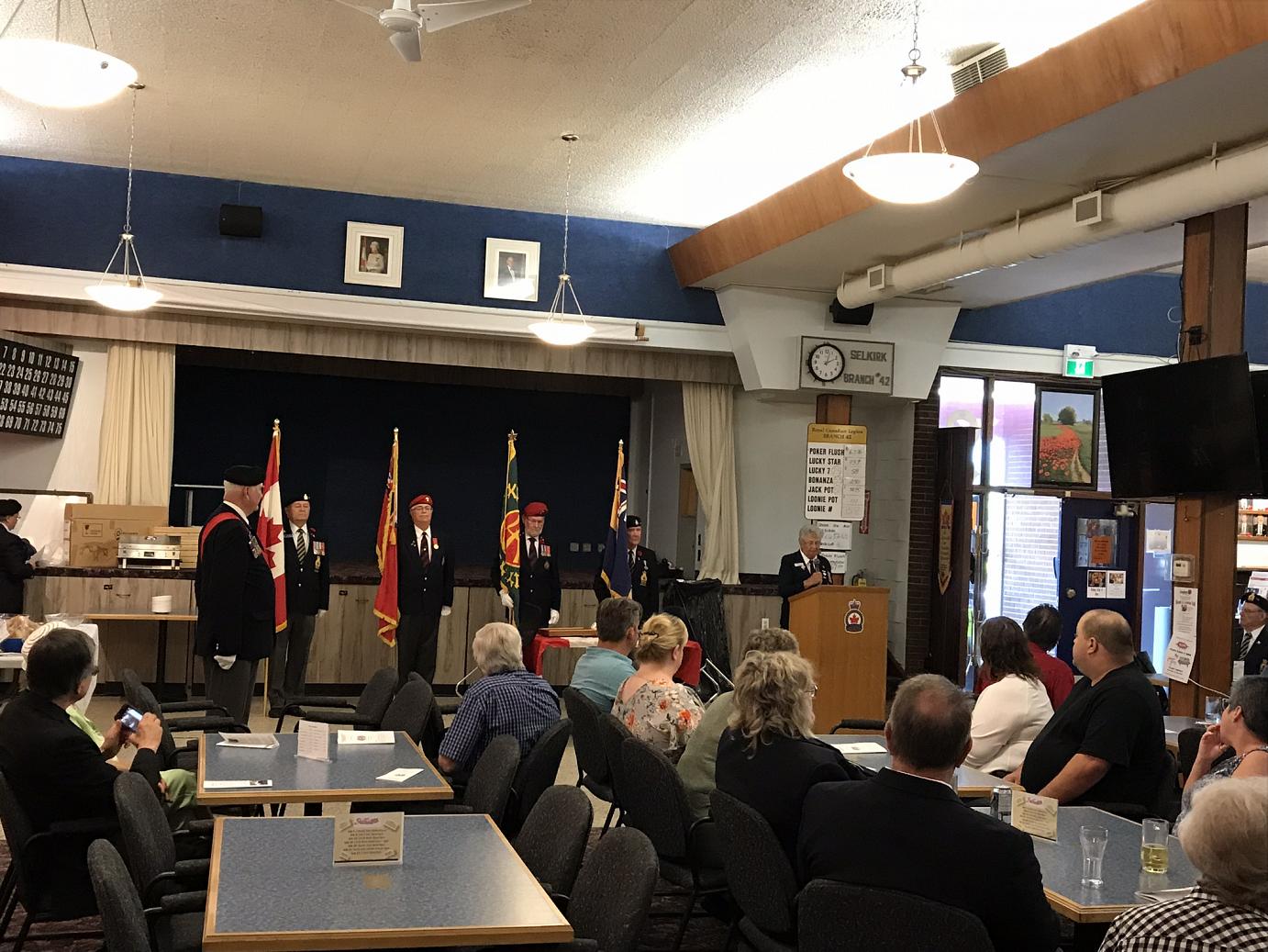 Thank you to Mayor Larry Johansen for attending, his support and appropriate remarks to the occasion. Thank you to Legion President John Austin for his remarks and with his wife Heather for their hospitality and arranging a reception following, to the Selkirk Legion Colour Party with Sgt-at-Arms Len Johnson and to Padre Steven Sharman for his devotions.