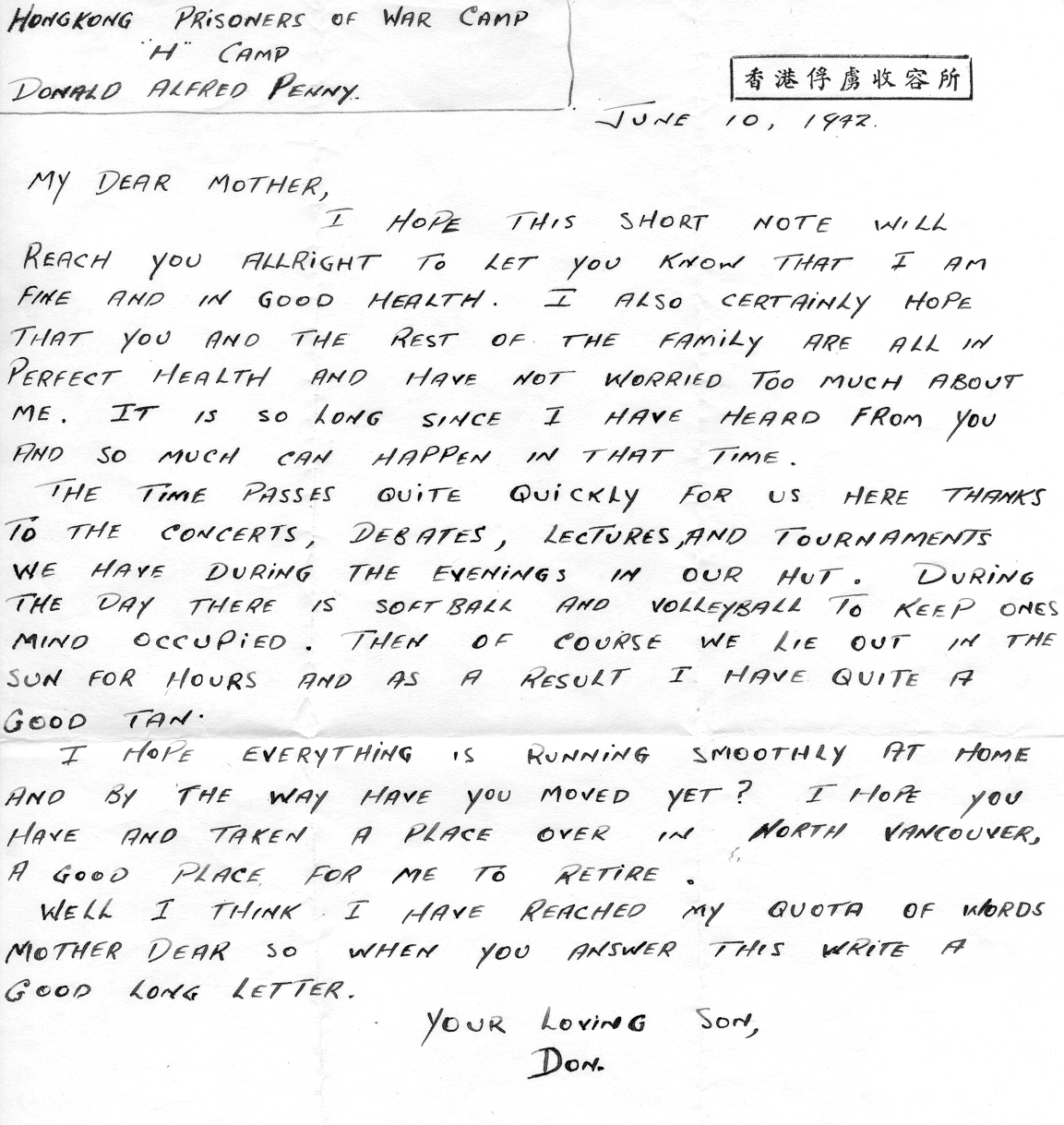 On January 14, 1942, the Defence Department sent out the first of what would be a continuing series of letters establishing contact with the next-of-kin of Canadian troops who fought at Hong Kong.
