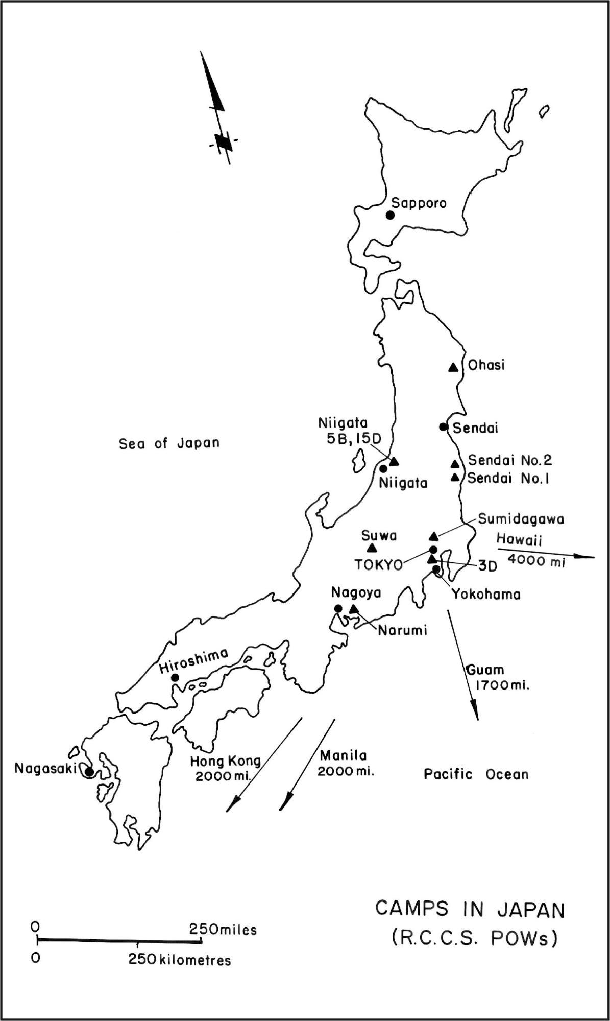 Left Hong Kong on Tatuta Maru Jan 19, 1943. Arr. Nagasaki, Japan Jan 21, 1943 – Train to Yokohama 2 Days and 2 Nights – Electric train to Kowasaki – March to P.O.W. Camp – Tsurumi. (Don Penny)[632]