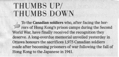 CBC - (from the Canadian Press) Memorial Honours Canada's Hong Kong Veterans, 13 August